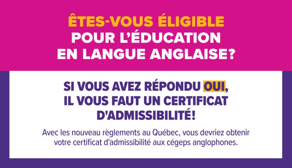 • If you don’t have one for your child, you must apply for one. NOTE: In order to qualify for one, you must meet certain eligibility criteria under the Charter of the French Language as set out by the Quebec Government (see list of criteria A to H listed below)